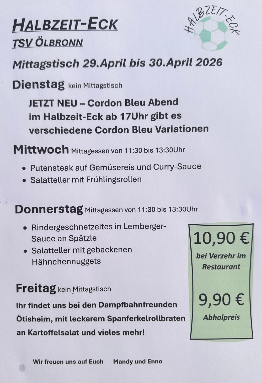 Das Halbzeit – Eck soll ein Platz zum Wohlfühlen sein. Unsere Küche ist frisch und regional. Wir bieten moderne Speisen und vergessen dabei unsere gutbürgerliche Küche nicht.